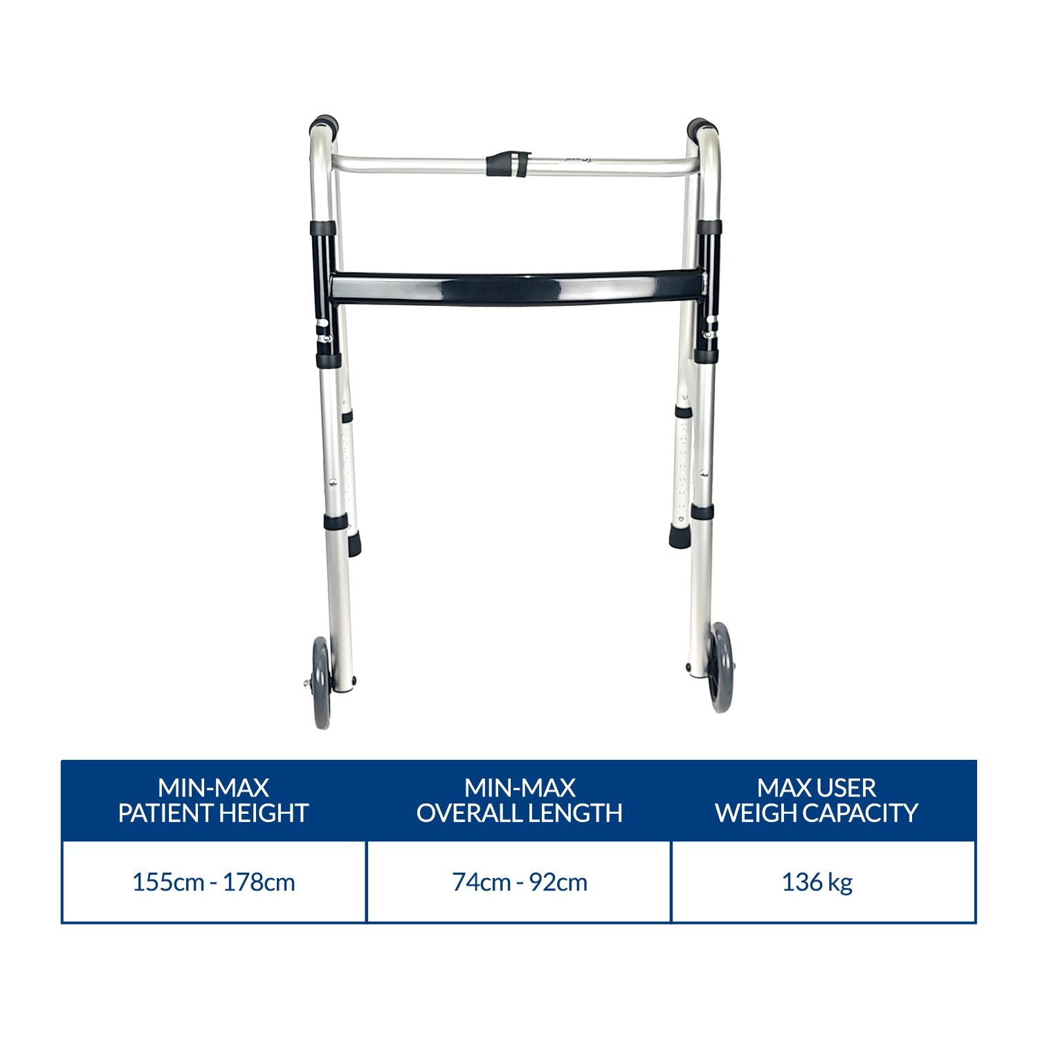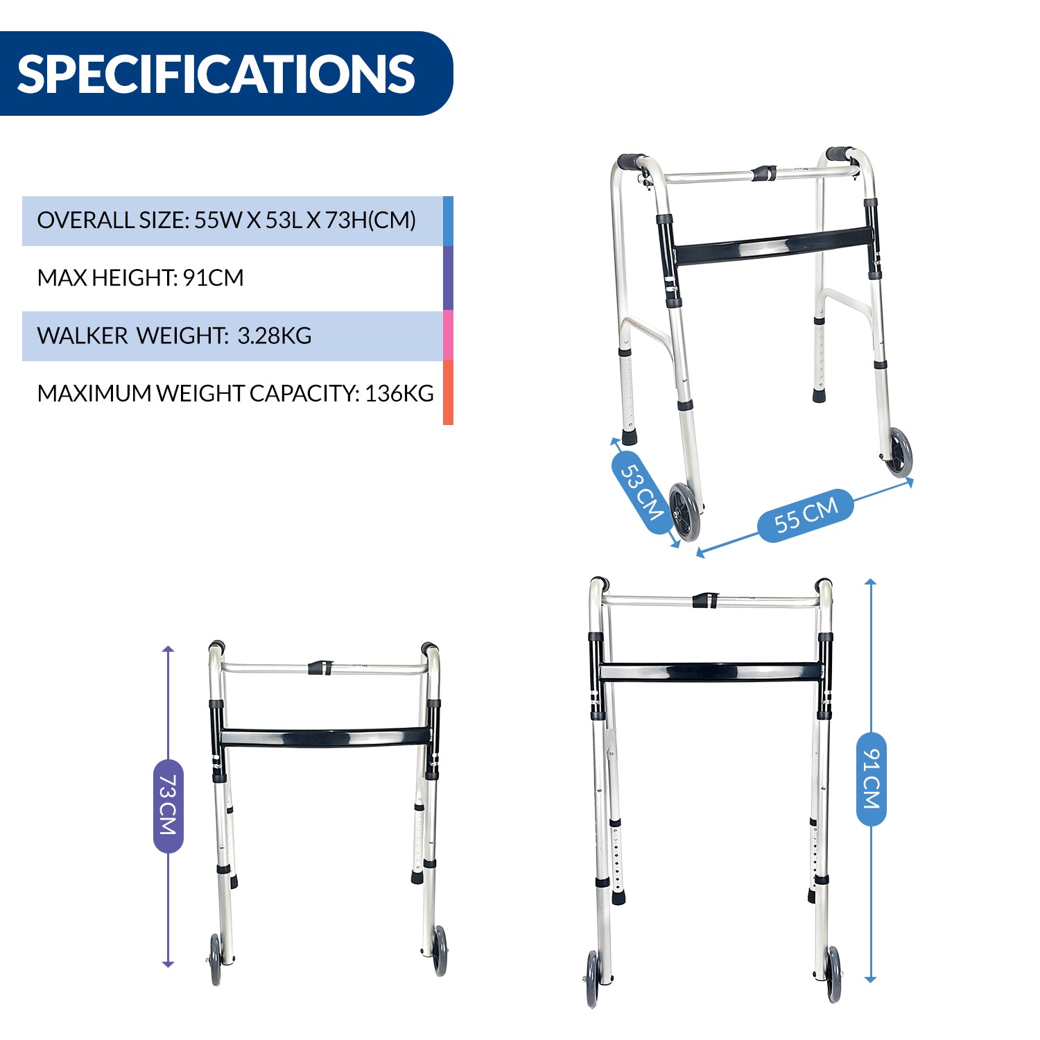 • Push Button Folding Mechanism - simplifies storage and transport, making the walker more convenient to use in various settings and ensuring effortless mobility for users