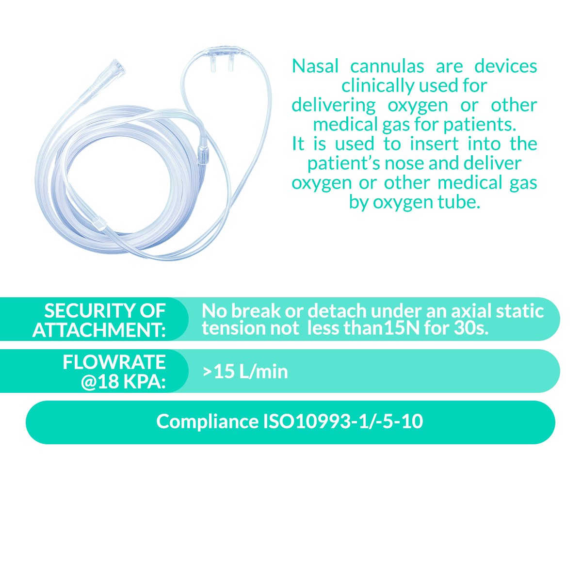 Product Description: Nasal cannulas are devices clinically used for delivering oxygen or other medical gas for patients. It is used to insert into the patient’s nose and deliver oxygen or other medical gas by oxygen tube