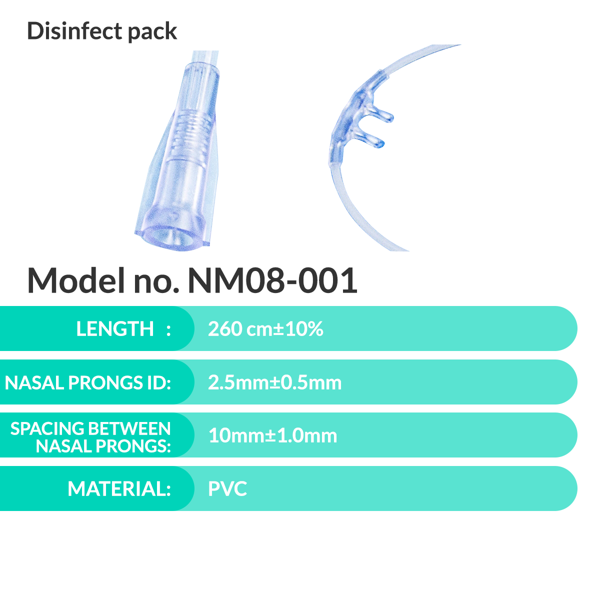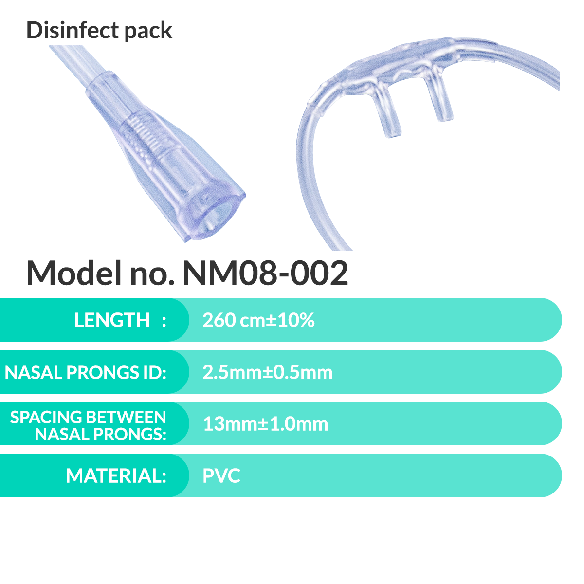 Spacing between nasal prongs: 14mm