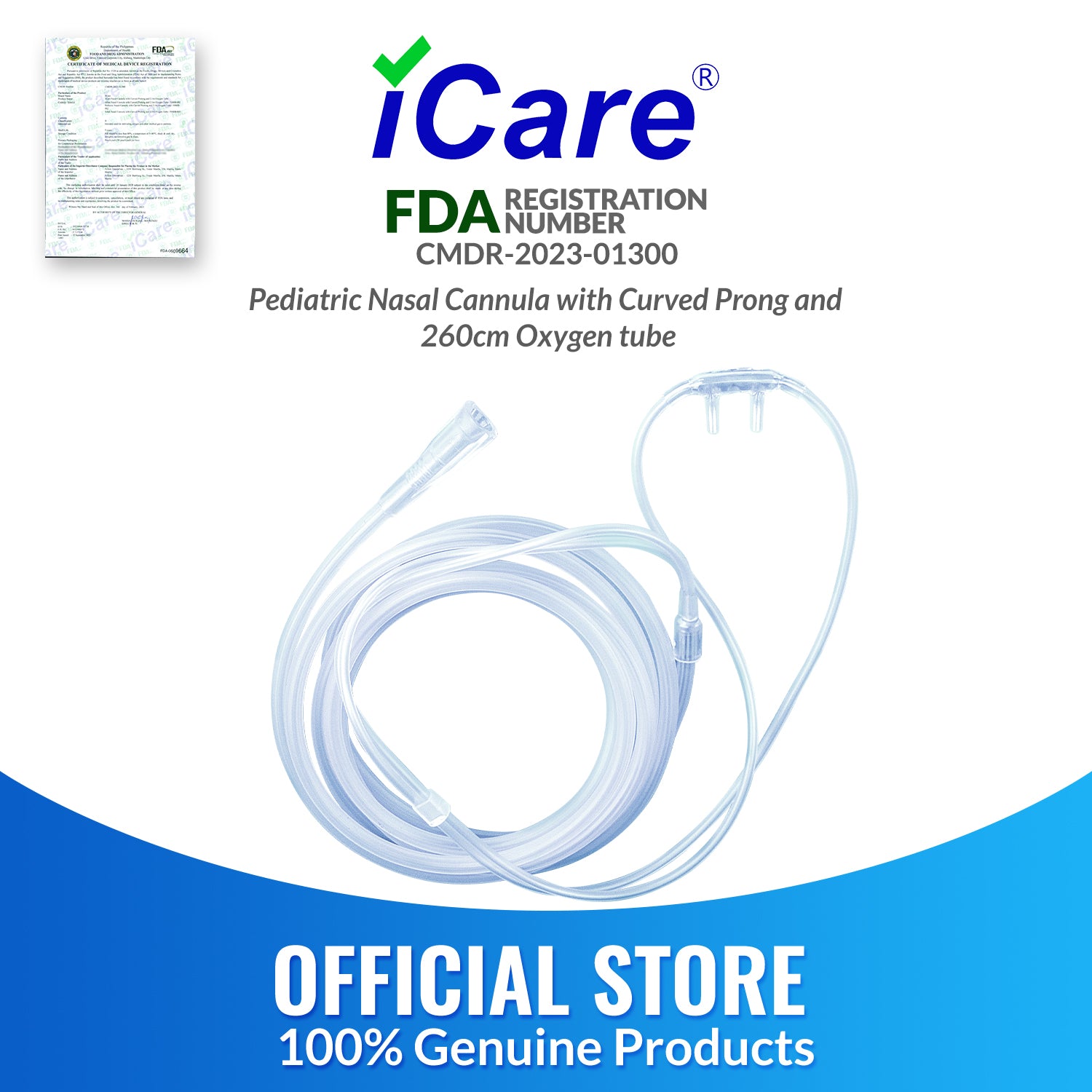 iCare® NM08-002 Nasal Cannula 260cm Oxygen Tube