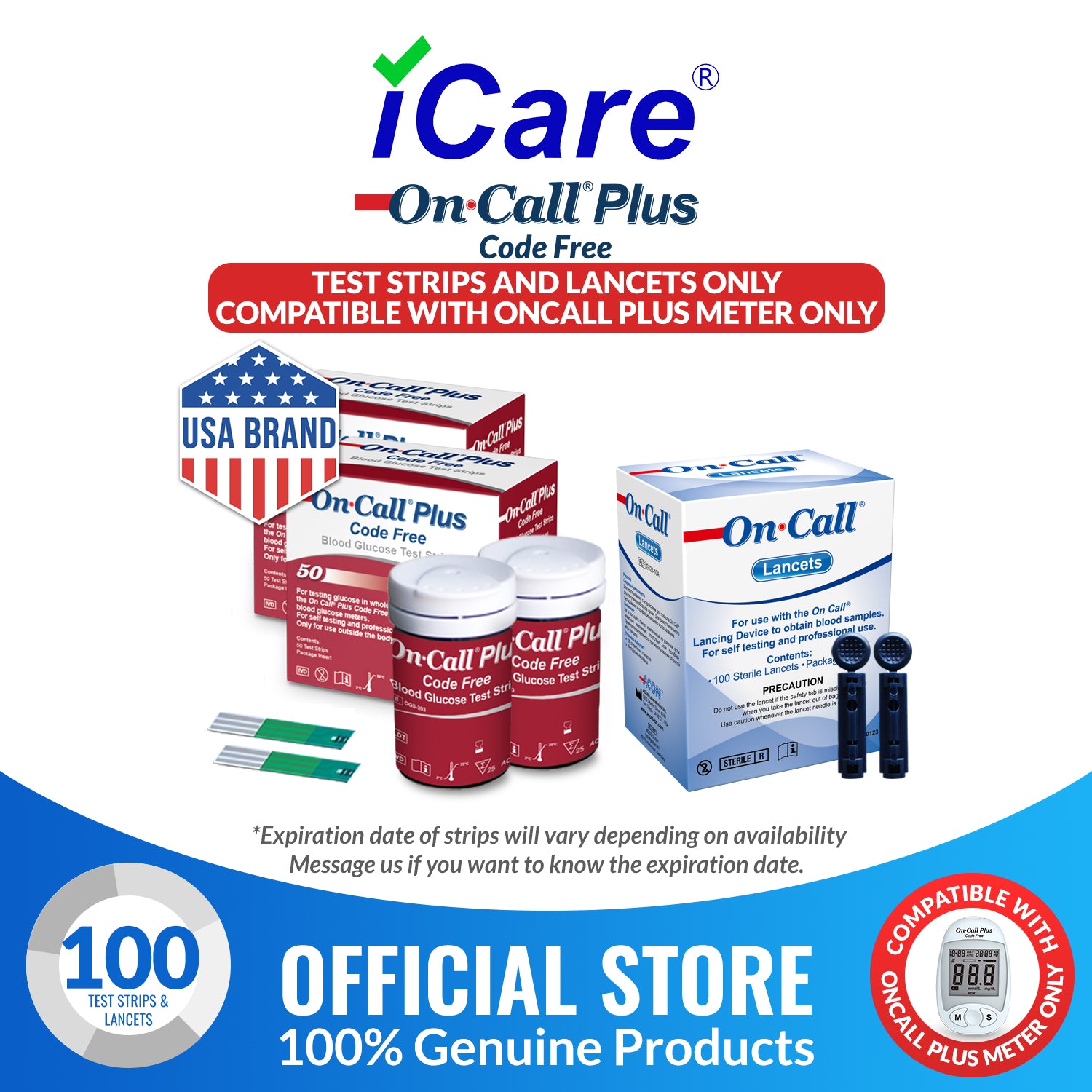 iCare® On Call Plus Code Free Test Strips and Lancets ONLY COMPATIBLE WITH On Call Plus (Code-Free) GLUCOSE METER SA