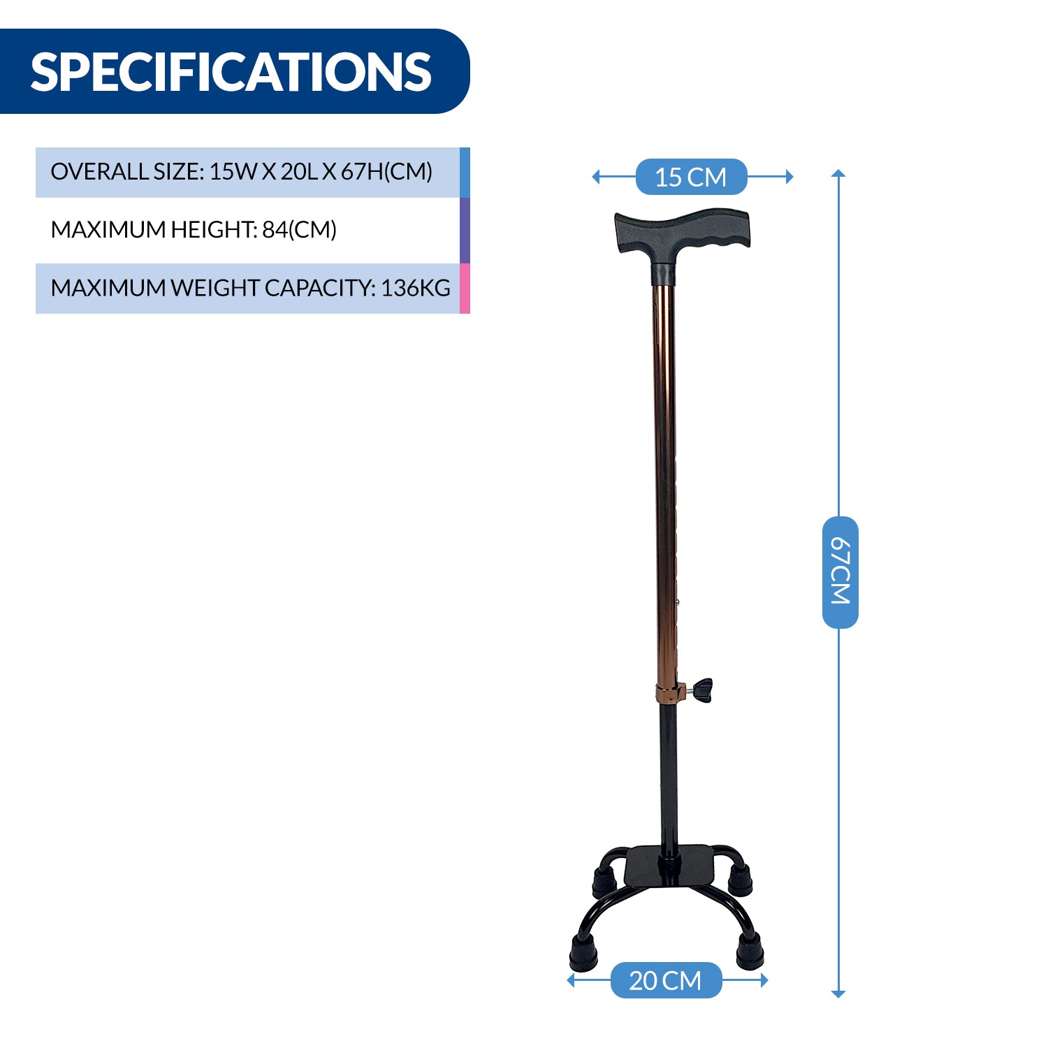 Experience the freedom to move confidently and independently with the QuadPro Cane. Rediscover your mobility, regain your confidence, and enjoy the activities you love without worry.