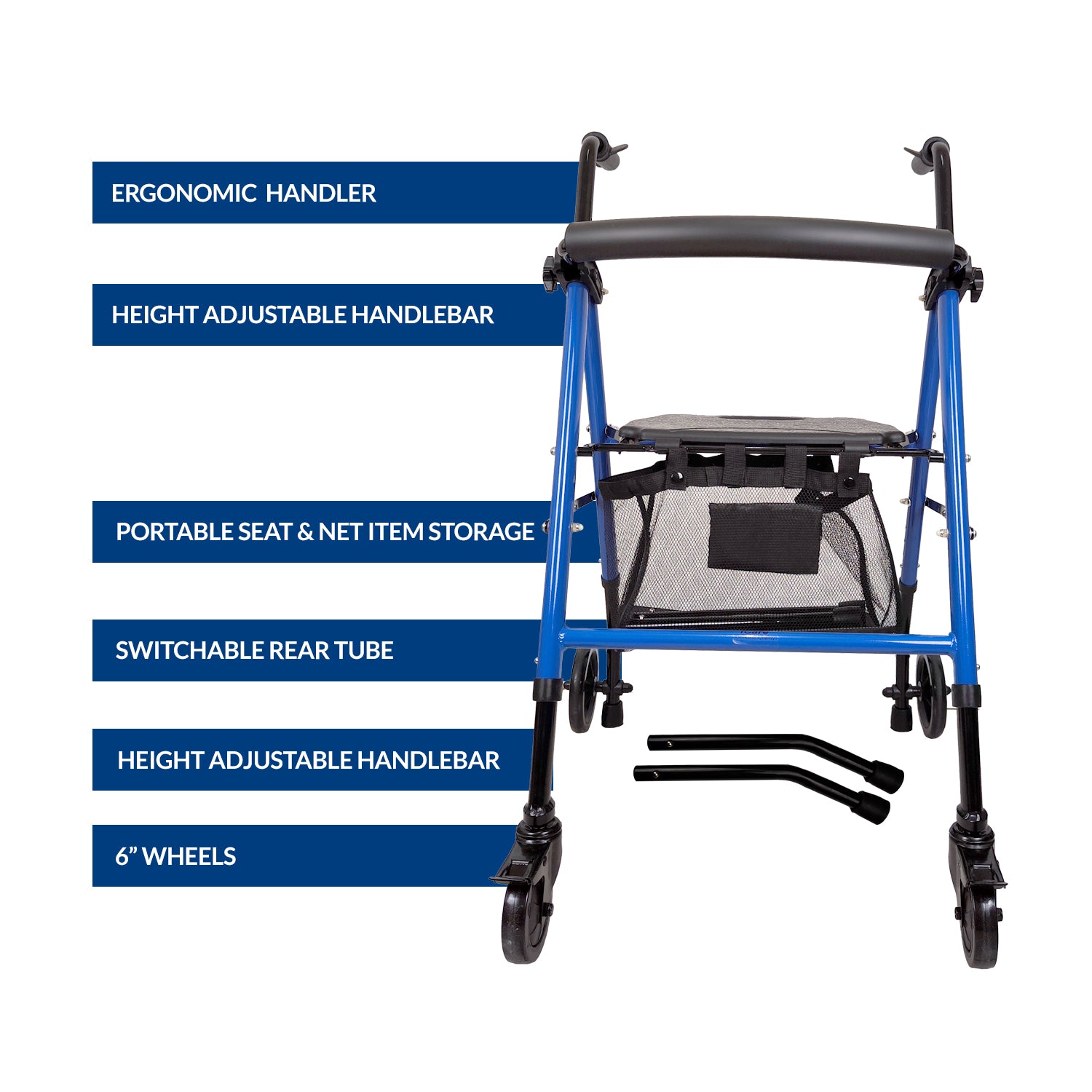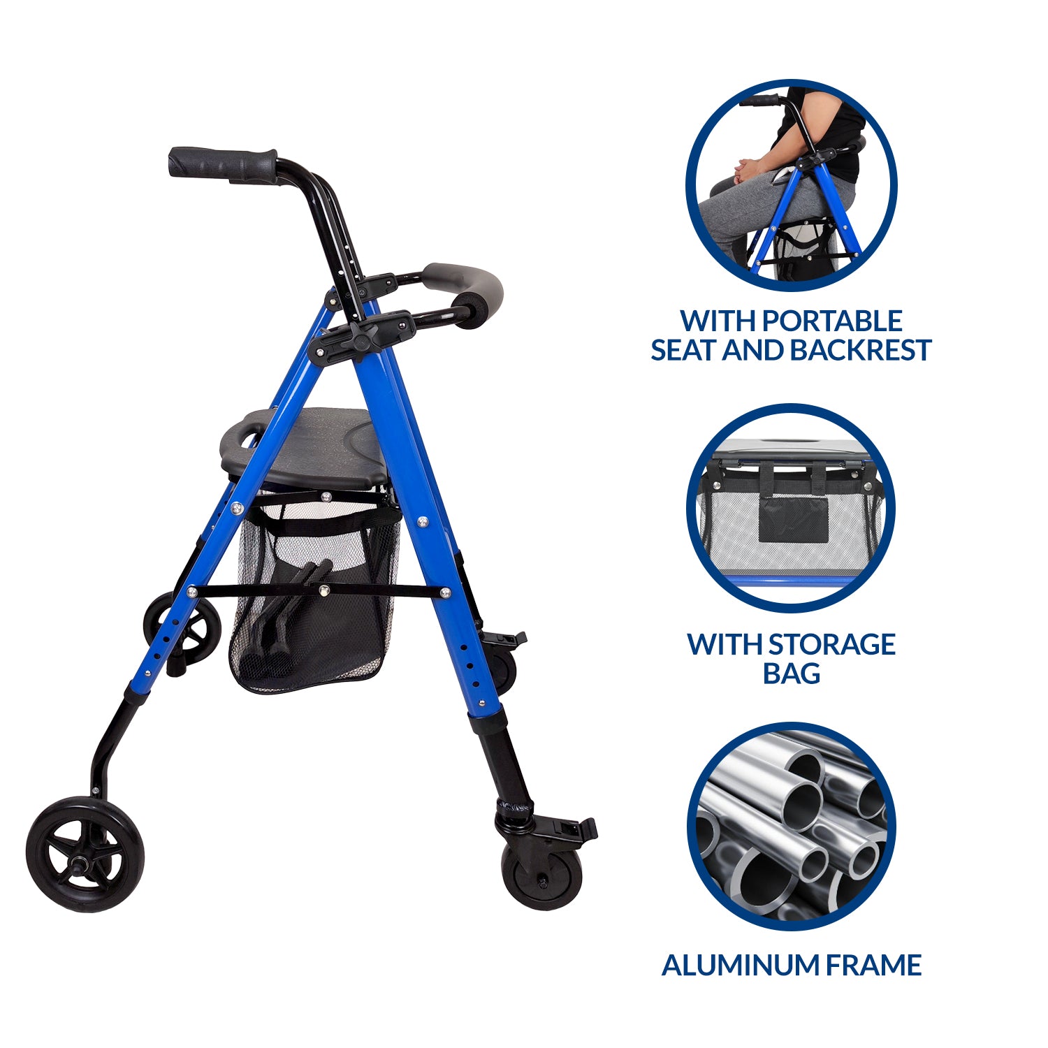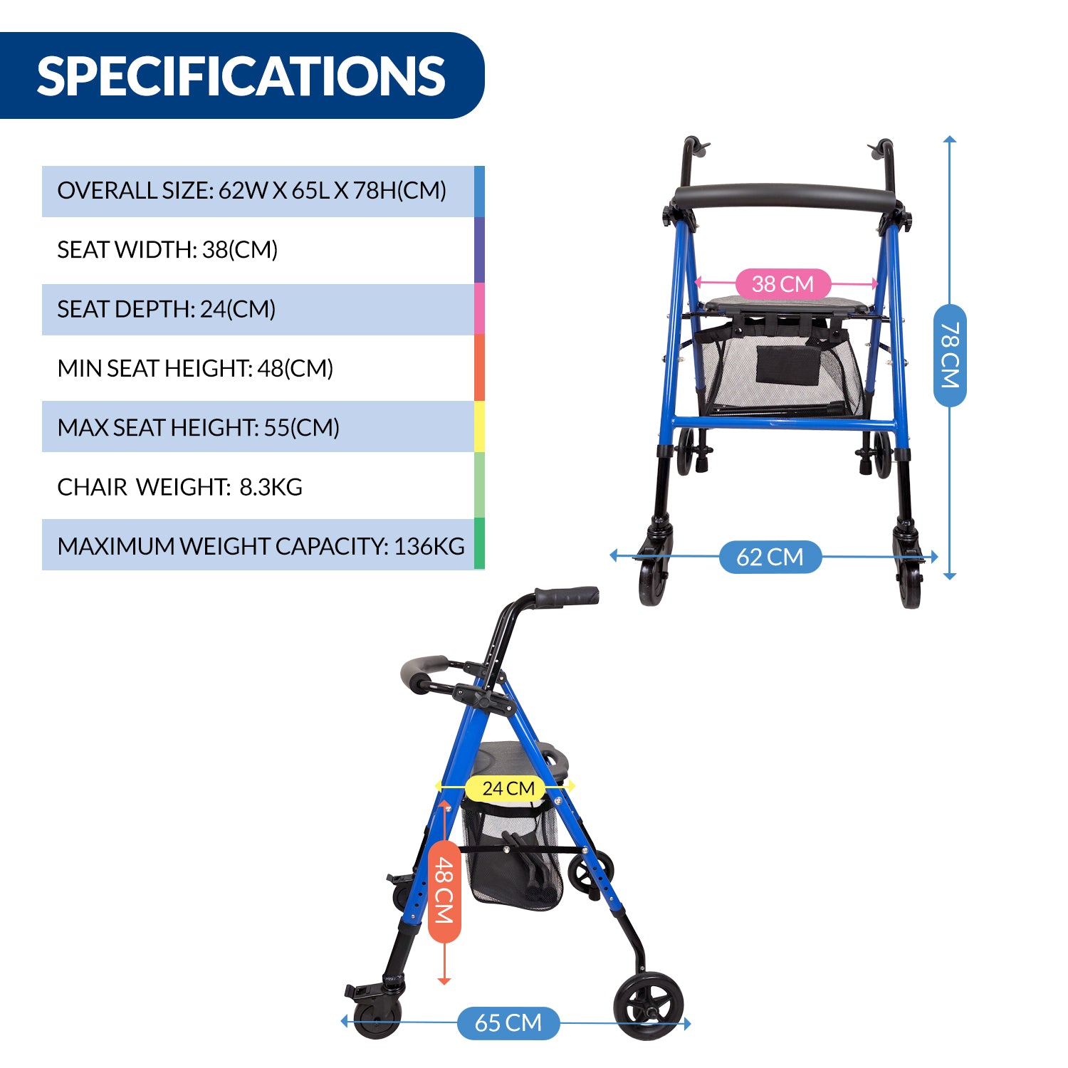 The Lightweight 4-wheel Rollator is designed to provide support and assistance to those unable to, or who lack the confidence to walk without some level of support. This rollator is intended for indoor and outdoor use, and folds away for easy storage or transportation.