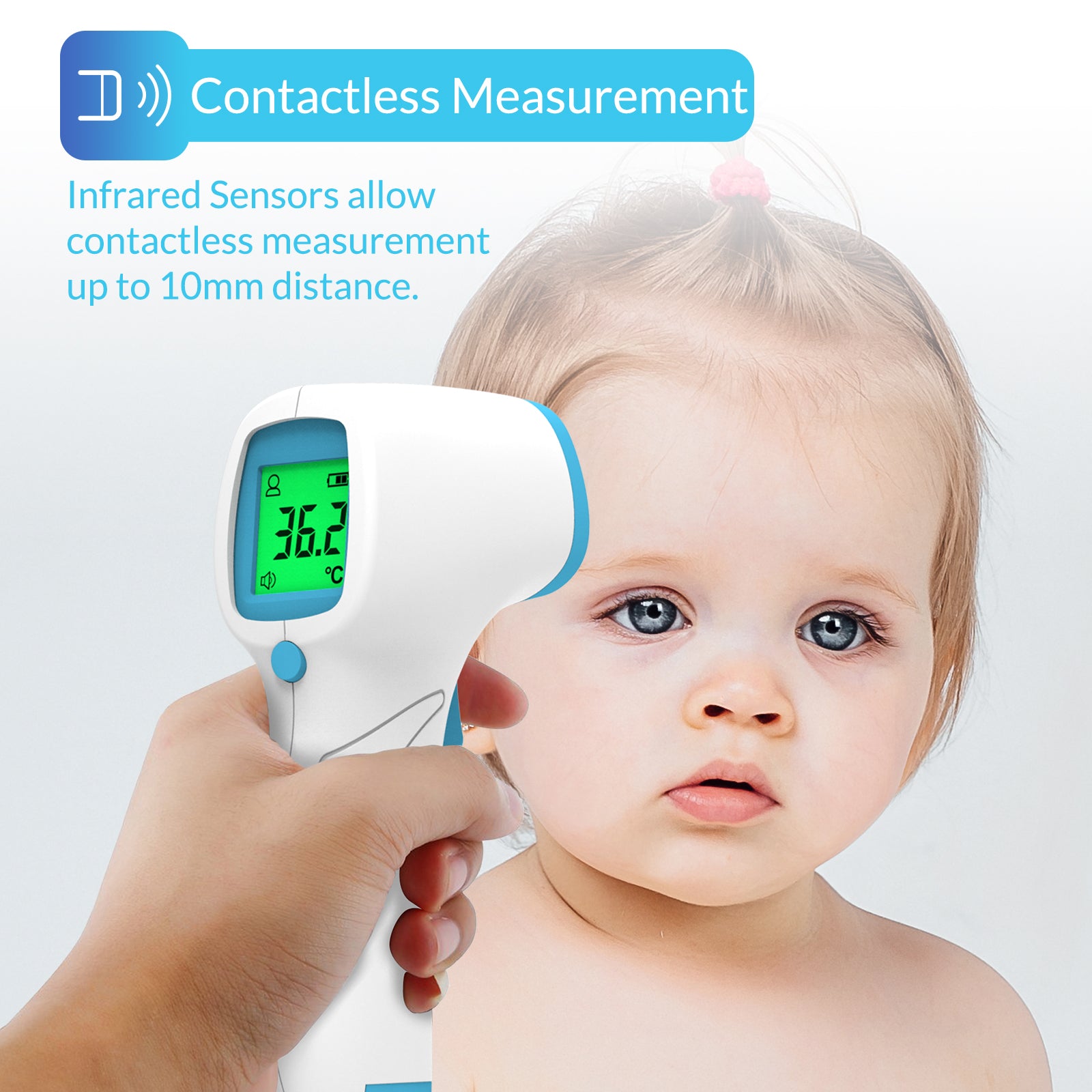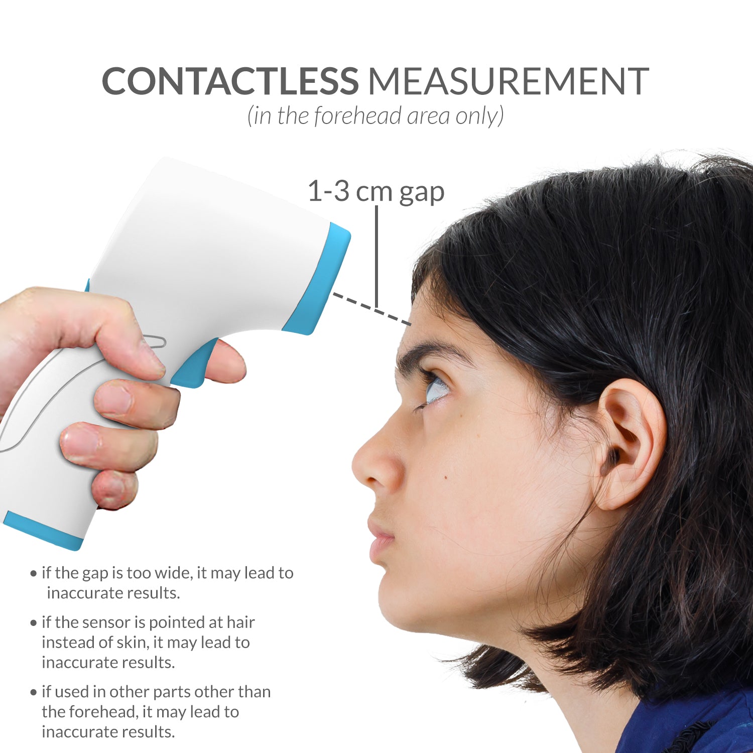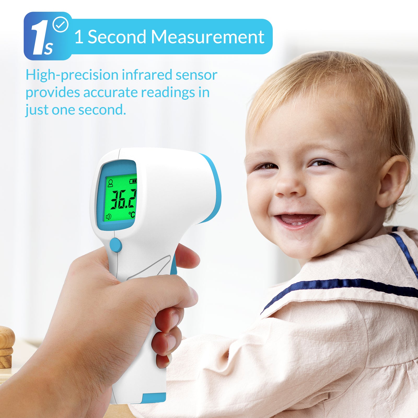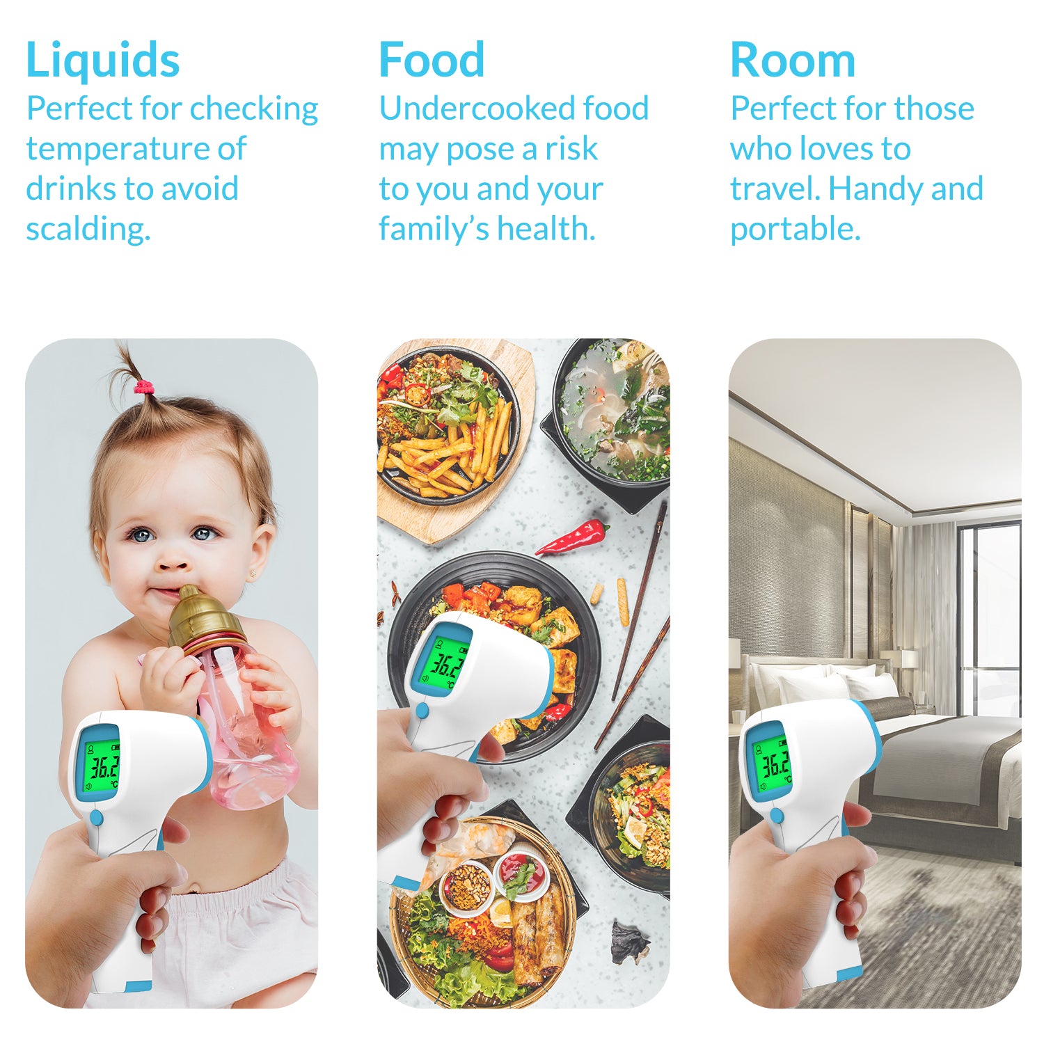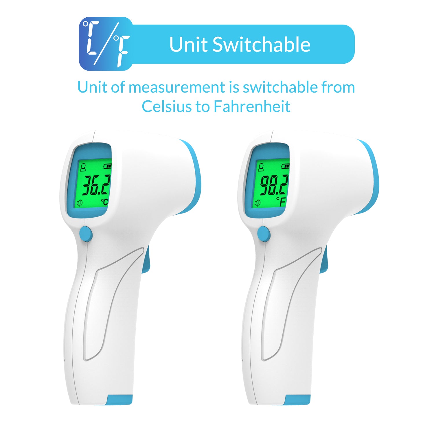 • Multifunction: The temporal thermometer can easily switched ℉/℃. it is designed for all ages, adults, babies and elders. In addition to measuring forehead, it can also measure room, object, and liquids temperature. Great choice for families, nursery, hotels, school.