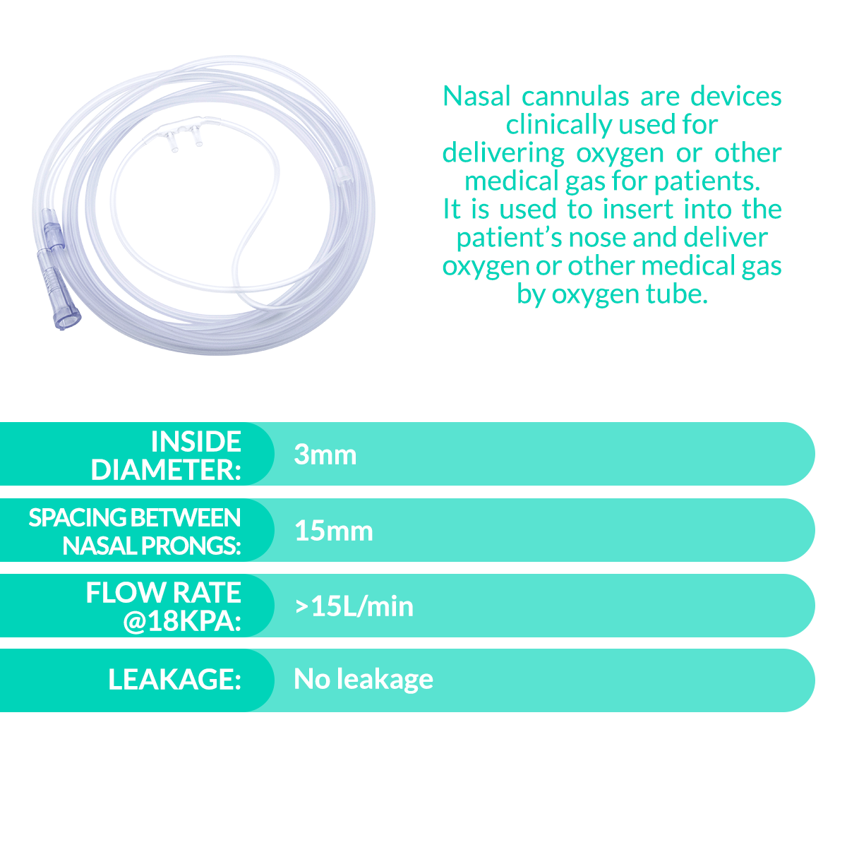 Product Description: Nasal cannulas are devices clinically used for delivering oxygen or other medical gas for patients. It is used to insert into the patient’s nose and deliver oxygen or other medical gas by oxygen tube