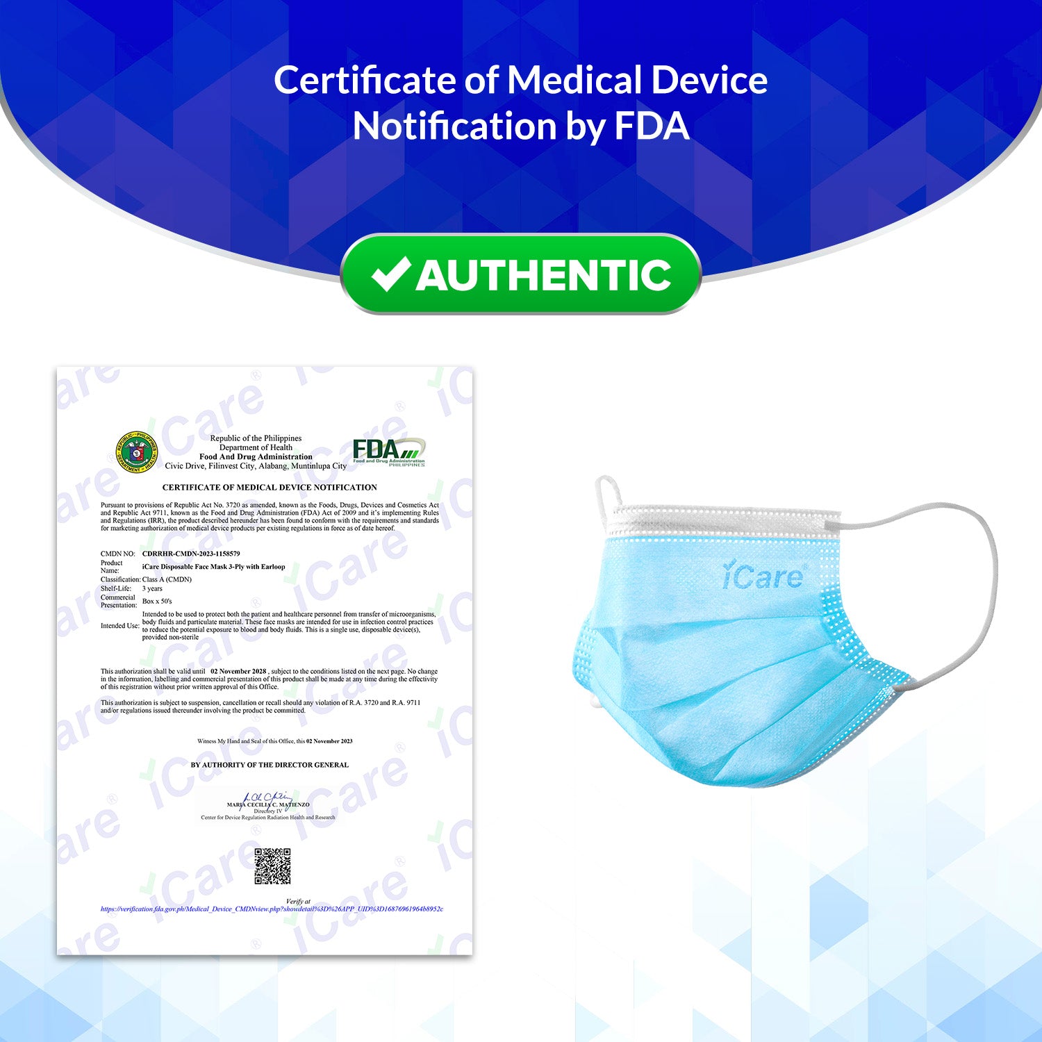 iCare® REF285 Disposable Face Mask ( Type II For Medical Use) with Comfortable Elastic Earloop