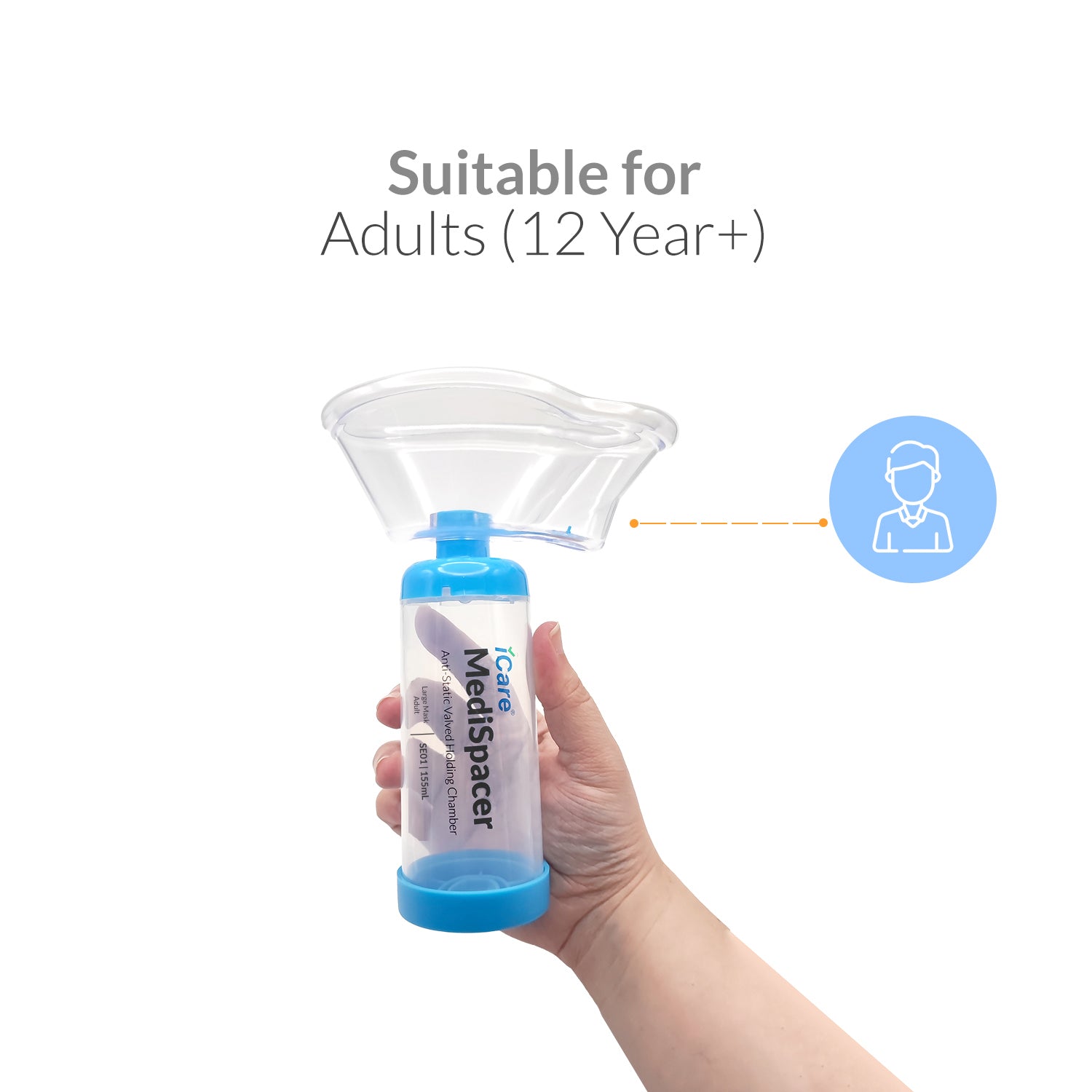 iCare® SE01 MediSpacer Chamber Chamber Spacer (NO INHALER INCLUDED) for Adults with Large Mask, Fit Any Size, Sealed Package, Clean and Safe, for with your Asthma Inhaler, Ventolin via Chamber Spacer