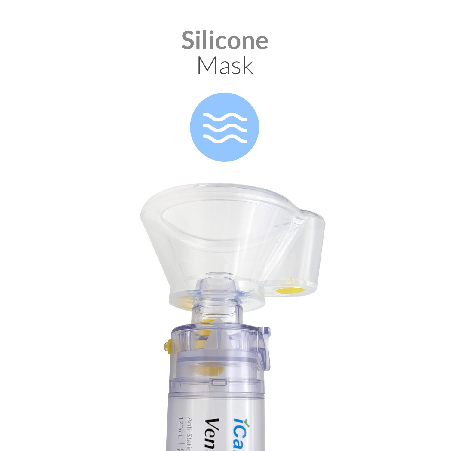 SOFT and COMFORTABLE Silicone Mask make tight air seal around nose and mouth insuring no medication is wasted.