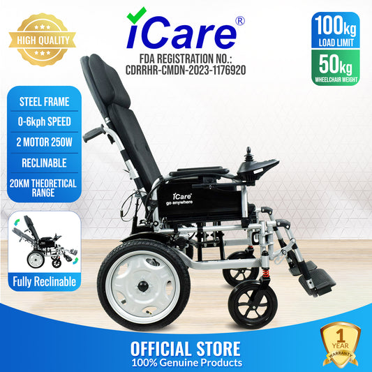 iCare® E510 Power New Model Reclinable Electric Wheelchair(100kg Load Limit, 50kg Wheelchair Weight)
