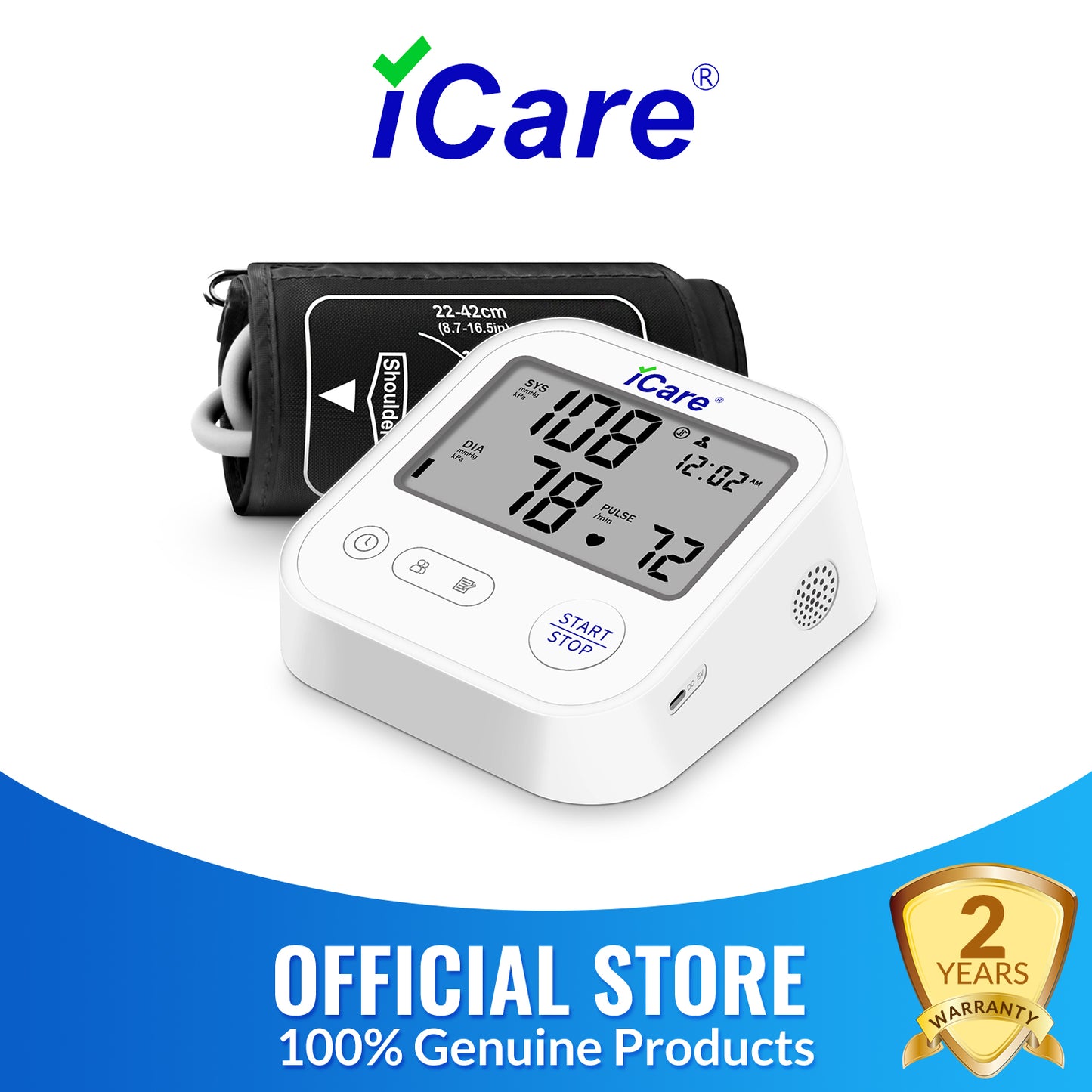 iCare® CK222 Automatic Digital Blood Pressure Monitor / Digital Sphygmomanometer Large arm cuff 22cm-42cm Type-C USB Port