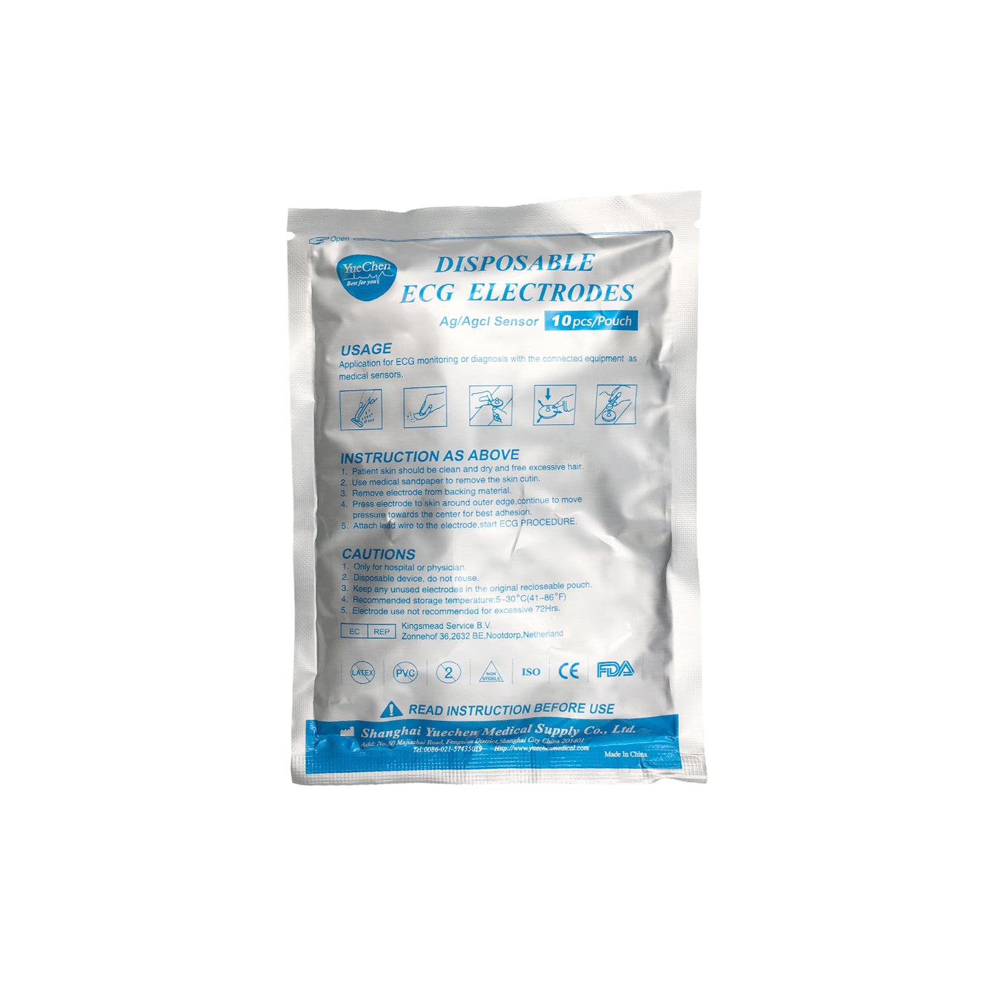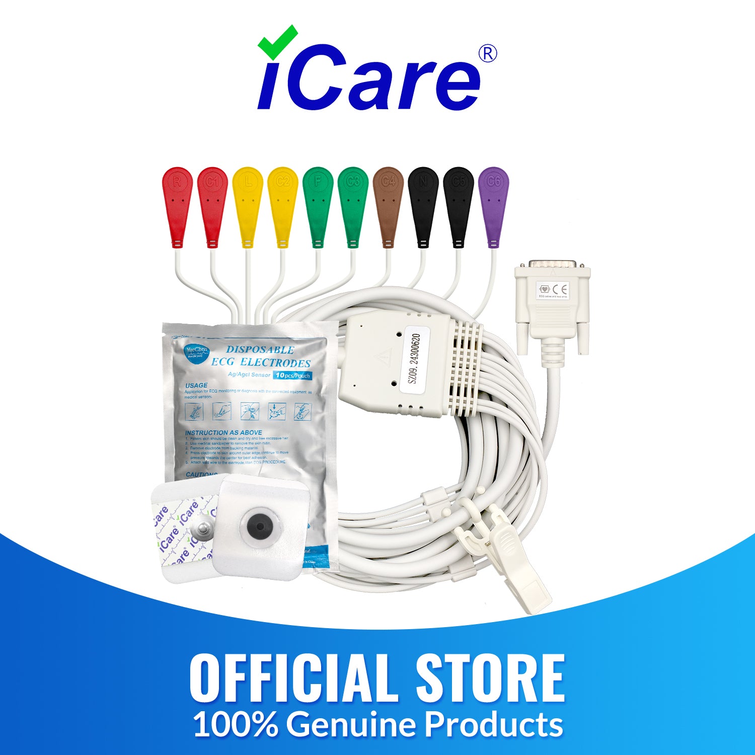 iCare® ECG Cables(Snap Button Type) with 1pack ECG Electrode Pads